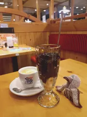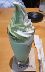 抹茶オーレフロート 抹茶オーレフロートにソフトクリームをハーフに変更しました。美味しかったです。