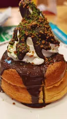 そろそろ… 月曜日の夜ドデカメンチチーズバーガー🍔が売切になる前に食べ納めをと😋やはり、ドデカ✨️なので半分はテイクアウトで食後のデザートに『 ごちそうカスタード』をと思いましたが、売切…😢仕方がないので『 瑞』☕を飲みながら読書📖 やっぱり、何かデザートを…🙄ブラックモンブランパフェ✨️シロノワール