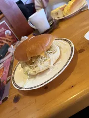 今日は母とコメダに来ました。フィッシュフライバーガーと手作りたまごドッグをシェアして食べました。どちらも初めてでした。フィッシュフライバーガーは魚の旨み、しゃきしゃきキャベツ、タルタルソースが相性最高でした。たまごドッグはたっぷりの卵ペーストやっぱり美味しい。割とあっさりめで、下の甘めのソースとよく