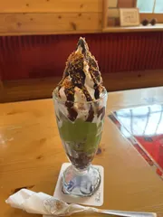 初パフェ! 抹茶プリンが中々の食べ応え。あまり甘くないのでソフトクリームや、餡と混ぜながら食べるとバランス◎でした😋抹茶好きなので、フラッペも食べてみたいです✨