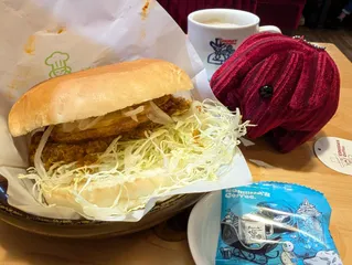 日置橋店(名古屋市)に来ました💨近くに黄色い「日置橋」があります まずはコーンスープ+5番モーニングをいただきましょう😋 そして今日から「台湾ミンチのコメドムバーガー」の発売開始🤤辛子マヨネーズからマヨネーズに変更しましたコメぞうくんもスタンバイOKです ミスコメダのバ
