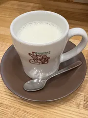 1月4日のラッキーメニュー⭐️ 1月1日からスタートした『今日のラッキーメニューを楽しもう٩( 'ω' )و❣️』も今日で4日目。本日のラッキーメニューはホットミルク たっぷりサイズです😄🎶モーニングタイムなのでお得なモーニング3番いちご🍓ジャムを選びました😊。ミルクとおぐらあん💖✨ホットミルクで半分まで飲んだらおぐらあんを入れて