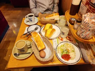 26卓の確率高め(笑) 今日からの東京行きが延期になったので、今朝も夫とモーニング10組待ちでも、なんてことない、わりと早くに座れましたまたしても26卓🎵モーニング、あれこれ悩んでみたけどいつもと変わらずでしたカフェオレの美味しさを再確認☕夫はホットドッグとたまごドッグをずいぶん悩んでたまごに!モーニングの🥚がアツアツ幸せ