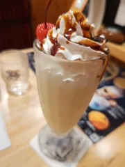 フラッペクラシックプリン 夕飯でチーズカリートーストを食べました。先に、フラッペがきて10分くらいしてからカリートーストがきました。店内は混んでないようだけど。