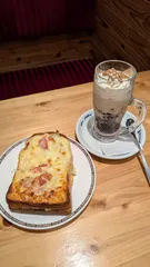 たっぷりたまごのピザト−スト ジェリコに。お昼時で食べたことないものにしようと、ピザト−ストに。ト−ストを家でしっかり焼こうとすると固く成りがちですがお店は香ばしくサックリ。2切れでも卵とチ−ズでボリューミ―でした。