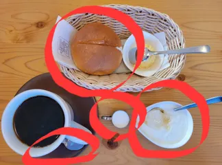 チャコさん4箇所正解です🙆 5箇所に見えなくもなく💦 モーニングの写真撮ろうと 📸画角などの向き変えてる時に 思わず遊び心が 湧いてしまいました😅 お付き合い頂き ありがとうございました!