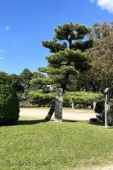 名古屋城二之丸にて 藩訓秘伝碑に対峙し、常緑針葉樹の先の落葉広葉樹と出会う
