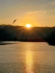 日の出 6:56 おはようございます 今朝は風が強く 気温も低いです 今月2度目の化学療法のため 整理券をゲットし 朝日が撮れたらいいなぁと1番目と呼んでる橋のたもとへ 朝日は すがしい心持ちになります 橋の上から カラスが柿を落とし 潰れたのを啄む様子を見ました賢いと