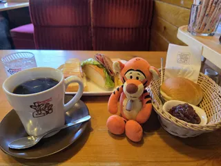 タダさん、こんにちは。 あれっ、定例会水曜日じゃなかったかしら? 昨日はコメ友さん達とお花見🌸で変更? 店内の桜🌸満開で凄く綺麗❗️華やか❗️ お陰様で、遠い地から参加させていただき嬉しく、感謝してます‼️ ありがとうございます😊 Aトースト🍞モーニングに、流行りのホットドッグ🌭追加! 大事
