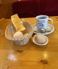 やっちゃん、こんにちは。 定番モーニング、美味しそうです。 子供用椅子が可愛い。