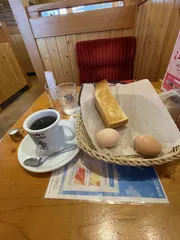 定番モーニング☺️ 今朝のコメダ珈琲店は大盛況😊待ち合わせなのでBOX席に着席🙂時計⌚️を置いて時間チェックしながら☕️👍