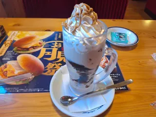 今年初のお月見祭を食します ジェリコスイートマロンを食べなら作業します。マロンの甘さとジェリコが丁度良い感じになってます😊そしてお月見フルムーンバーガーも十分なボリューム。二つのカロリーを考えるとちょい怖いですが。マイコメがモバイルオーダーができるようになってました。9月からかな?もう数ヶ月早ければと思いますが。つぎは和紅茶や