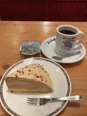最後は本店。駐車待ち1台。2〜3分で2台出たから良かった。入ってからも3〜4台入って来たから本店は凄い。 ちゃんとしたものを食べたかったけど、モーニングでお腹いっぱいで、シロノワールブラックサンダーミニにしました。新しい豆菓子に出会えました。