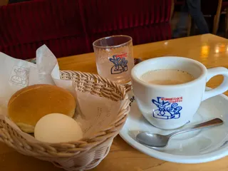 本日は、モーニング利用です。 朝から混んでました!! 山食パン 定番ゆで玉子ミニサラダたっぷりサイズのコメダブレンド 今日も頑張ろう!!