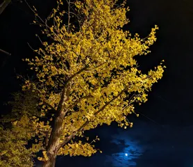 イチョウと月 夜🌃街灯の灯りでイチョウと月がいい感じでした。イチョウ並木もオレンジの街灯で素敵でしたが、見る人見たら何処だかわかる🫣