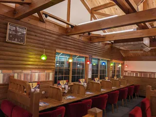 夜のベイエリア店⚓2階 時計の下の緑の灯りの席が、先日日中座った席。灯りの並び順決まりあるのかな🤔🟢 🟡 🔴 🔵 🟢 🟡 🔴…無いか⁉