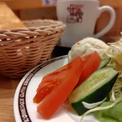 あつあつ トマト🍅と、キュウリ🥒が、ね😁厚々なのです🥗✨コメダブレンドは適温🌡️そんな土曜日のモーニング🍞☕このところ左トーストとの出会いが多いですね🍞✨今日のたまごペーストも、まるまるまんまる🟡✨食後の運試し🔮裏ロゴ〜🤍😆はちみつひたひたヨーグルト🥣✨いつもの席で、いつもの定番を🥰いつものが幸せな日常☕😌今