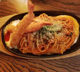 エビフライ付きナポリタン 鉄板で最後までアツアツでした~