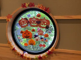 おかげ庵本店の丸窓 おかげ庵本店の丸窓の移り変わり 建築中 これは、多分入り口のところの丸窓 夏かな。 いろいろと装飾されていて、楽しい。