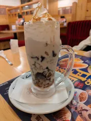 9/13のコメダ珈琲店 ジェリコ飲みたかったけどクリクリして倒れそうなのでアイスオーレにw 嫁はマロンのジェリコでした😄 レタス少なめ?笑いつものかてりやきか悩み照り焼きをチョイス 私のお月見祭が始まった土曜日でした😄 もちろんシロノワールも食しております‼️ この後、嫁が