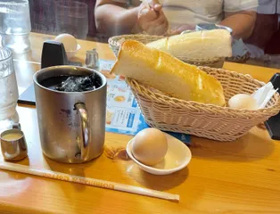 本日1軒目は友人と(^^)トースト・Aセット・玉子追加の定番😌