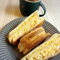 お家でエッグトースト こんにちは♩ちょうどコメダのサンドパンが3枚残っていたので、たまごペーストを作ってエッグトーストにしました♡しっかり辛マヨも作って塗ってトーストと同じ切り方にしてみました(o^^o)よく焼きが好きなので だいぶ縮みましたが、とっても美味しかったです!こちらも美味しくいただきました!初めてのカフェオレ