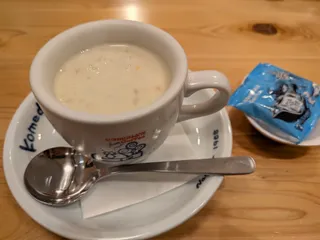 たっぷりミルクコーヒーにコメダ特製グラタン。まろやかで美味しかった。Xmasのランチにプチ贅沢したい!