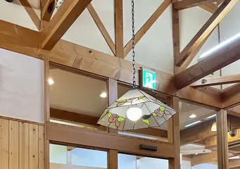 コメダ珈琲店 電灯のガラス傘・陽の明・長電灯💡夜に来ると明るく過ぎる長電灯なの😅