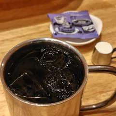 11枚チケットチャレンジ⑦ 夜も遅いのに第1駐車場が満車🚗🚗🚗🈵マイコメは今日も人気なのです😊第2駐車場から歩く〜🚶💦🚗ということで、7枚目〜💞アイスコーヒーですね😆(カフェインレスの可能性もありますね😖)シンプルが美味しい🥤✨ミルク別添えで、コーヒーの苦味もミルクのコクも楽しむのです🥰