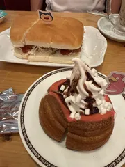 今日はポケモンメニューがあったので、ヤドンのいちごチョコシロノワールとカビゴンカツサンドのダブルオーダー!いただきます