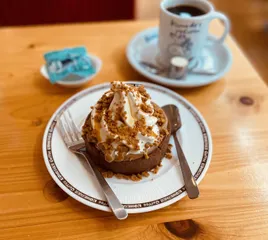 初お月見クロネージュキャラメルマロン🌰 皆さん♪こんばんは🌟 コメカキャンペーン中なので、コーヒーチケットが使えないメニューを選んで、今日はウインナーコーヒーとお月見クロネージュキャラメルマロン🌰 久しぶりのウインナーコーヒーは、ホイップクリームが中のコーヒーの熱で温められ、カップから溢れてきたので、スプーンで掬って飲