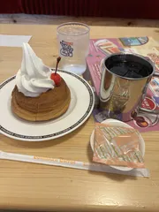 仕事帰りにお昼とおやつ兼用 メニュー名:ミニシロノワール/アイスコーヒーおすすめ度:★★★★★/5個中美味しい度:★★★★★/5個中福袋のスナック引換券まだミニシロノワールを残してて暖かくなったら使おうと思っていて、仕事中今日は食べれなかったから、昼とおやつ兼用でミニシロノワールを食べました。あまりにも暖かすぎたからアイスコー