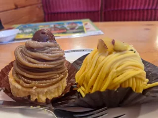 新作ケーキ🍰どれを食べようかと悩みながらラストオーダー間際、ギリギリ入店✨️ごまいもんぶらん🍠ごちそうカスタード🍮は売切アプリコットショコラがあったので✨️晩ご飯がてら食べに来たので物足りないなぁ…🙄寒いので温かいビーフシチューを追加オーダー✨️ ケーキを食べて、ゆっくり珈琲を飲みながら本