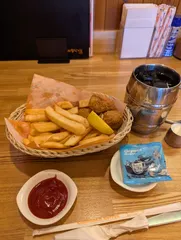 今日はリベンジ 今日は正月に行った時は激混みで帰りました。リ今日はリベンジして初コメに来たのですがアプリで注文出来ず残念😞毎コメにないポテチキはなかったので熱々で美味しかったです😊