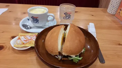 メニュー名:お月見フルムーンてりやきバーガーおすすめ度:★★★★★/5個中コメント:今日は1日中どしゃ降り☔で、お月様🌖見えないので、コメダでお月見です😉コーンスープ🌽と一緒に、いただきま~す🍴🙏💕