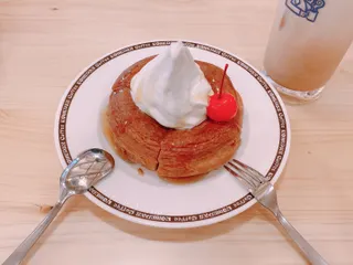 初、息子と二人でのモーニング☕🍞🌄 コーンスープを頼みましたが、専用カップが全部使ってるためこちらのカップでのこと。 いつもと違う感じで得?した気分😋 美味しいし天気も良いし最高でした! デザートにシロノワールも食べました。 お腹いっぱい最高の朝でした😋