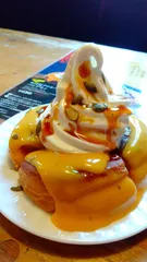 姥子山店でシロノワールパンプキン🎃 姥子山店の店先滝ノ水のおかげ庵の後は、3人で姥子山のコメダへ行きました。ジムの前なので、食べないでおくつもりでしたが、ついつい誘惑に負け・・お月見シロノワールパンプキン🎃そろそろ終わりそうだし・・美味しく頂きました😋