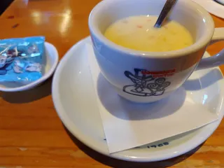 スープは美味しい… 最近マイコメとの相性が悪いみたいで…朝から ちょっとイライラ…従業員の方々 変わったからかな…グチってゴメンナサイ😣⤵️クラムチャウダー飲んで元気出します!みなさま 🎵楽しい連休を~
