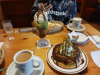 朝から盛りだくさん🍨🍰☕️🥪 モーニングと一緒に😄気になっていた抹茶コラボのパフェとシロノワールを子供とシェア💕