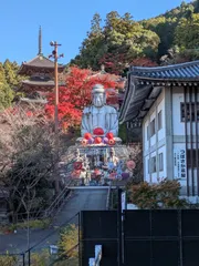 壷阪寺の大仏 【幸せエピソード】大仏様と和傘と紅葉