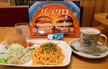 皆様こんにちは☺️ 今日もHappy Holidays🎄 今朝はゆっくりめモーニングに、さらに一度は試そうと思っていたグラコロ~海老香るトマトソース~を注文しました🍔 当たり前ですが、デカい🤩 私の手とあまり変わりませんでした😂 タバスコで味変しながらいただき、お腹いっぱいです💦 ↑絶対に残した