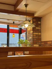 桜が咲いてから休日はいつも雨降り☔。お花見に行くには今日しか無い✊✨って思って、いざ鎌倉へ❣️お腹が空いてはお花見もできないので、まずは腹ごしらえに小町通に来ました💖。極楽への階段を登ると…そこはコメダ珈琲店 鎌倉小町店です😁🎶階段上がって入り口すぐ横の1卓。正面の絵を眺めながらランチを待つワクワク