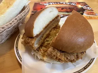 ジム後のコメ活(デブ活)① 今日からのドデカメンチバーガーを食べに仕事→ジムで筋トレ後にコメダへ。巨大メンチカツ、パンから数㎜〜1㎝はハミ出ててデカっ‼️って思いました。たぶん普通のメンチカツの6倍くらいあるかも😅🤔