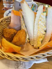 追加注文だー モーニングからのミニコメバスケット最近ダイエットしてて少食になってました4kg痩せたのに先日食べたドデカチーズメンチバーガー🍔のせいで胃がデカくかなった模様モーニングに物足りなさを感じて追加注文たまごサンドのたまごの量にぶったまげ🤣入れ過ぎでは?コメチキはサクサクジューシー🎶満足満足今日も良き日でし