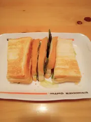 皆さま、 お昼のひと時いかがお過ごしでしょうか 出だしの遅い、コメダでモーニングして そのまま仕事してたら、案の定、 ランチ時間になってしまいました。 そこで、初ハムトーストをオーダーしました。 コメダのハムトーストってパン3枚で挟んであるのですね。知らなかったです。 中の野菜もシャキシャキで