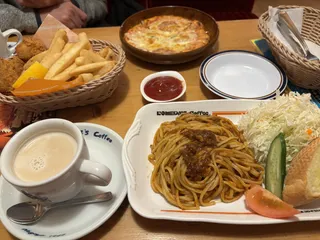 エコーさん、こんばんは😃 ☕️🍝🍕🥔🍗🥗🥖美味しそうだぎゃー🤤✨ 🍋✨キュッキュッ! コメダで家族の労いタイム完璧👍