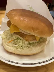 日中はぽかぽかと暖かい、春を思わせるような陽気の金曜日。今日のラッキーメニューは…フィッシュフライバーガー🍔です🎶ふかふかのバンズに溢れそうなキャベツがいっぱい入ったサクサク衣の中は厚みのある白身のお魚🐟✨。とろけるチーズと玉ねぎがアクセント😋。そしてタルタル好きにはめちゃめちゃ嬉しいタルタルソース