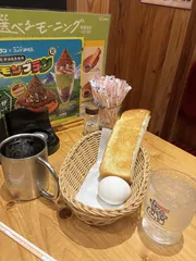 雨のせい❓3連休明けのせい❓お店に1番のりできた☝️✨ いつもの席💺いつものモーニング🍞🧊☕︎🥚いつも笑顔のスタッフさん👩 ブラックセールとカフェめぐりで少々疲れ気味ですが 今週も素敵な笑顔がたくさんみれますように‥‥‥😇😇😇