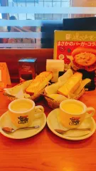 今日のモーニング😋 今日の店舗は入口に品切れのメニューがかなりありびっくりでした🥲今日の食パンは焼き加減が良くてサクサクして美味しかったです👍