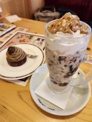 コーンさん、こんばんは😃。 フォークでひと口食べる度に純栗ぃむの美味しさが広がって、少しずつ削って行くと、大好きな断面を眺めながら食べ進められるので、目にも美味しいコメダの秋を満喫できました💖✨。 あっ、でも今回は白いクリームの中の栗のつぶつぶがわからなかったんです〜😅💦 今度はまた見つけるぞ〜٩(